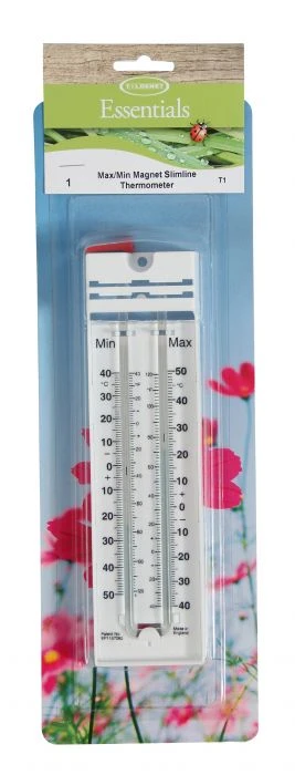 Magnet Slimline max/min thermometer with seperate reset magnet.