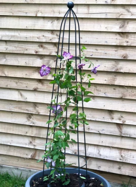 Our beautiful Queen Obelisk is a black coated steel structure. It is 1.2m tall and designed with a round base – ideal to add height and support in a traditional border and provide climbing support to any of your favourite plants.